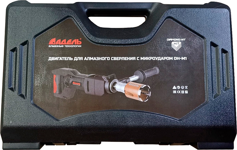 Бесщеточная дрель алмазного бурения с микроударом Адель DH-M1 (Adel ДХ-М1) предназначена для сухого алмазного сверления с микроударом отверстий Ø до 132 мм в бетоне, железобетоне, кирпиче, камне и других особенно твердых материалах при высокой рабочей скорости; как с использованием станины, так и "с рук"; для профессионального использования. Отличный вариант как для монтажников кондиционеров, так и для электриков. С дополнительными переходниками позволяет работать как алмазными коронками стандартной длины, так и коронками для подрозетников.