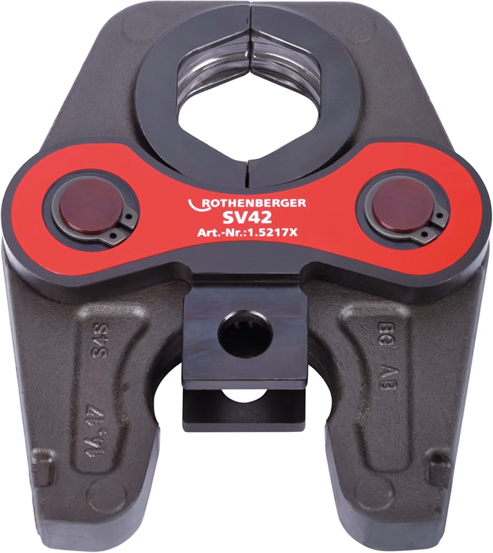 Пресс-клещи Rothenberger Standard SV42 (Ротенбергер Стандарт СВ42) проверенного качества, ориентированные на пресс-фитинговые и трубные системы обжима медных, нержавеющих стальных труб и труб из цветных металлов Ø 42 мм различных производителей. Предназначены для аккумуляторных и электрических гидравлических радиальных прессов Rothenberger Romax 4000 / 3000 AC / AC Eco.